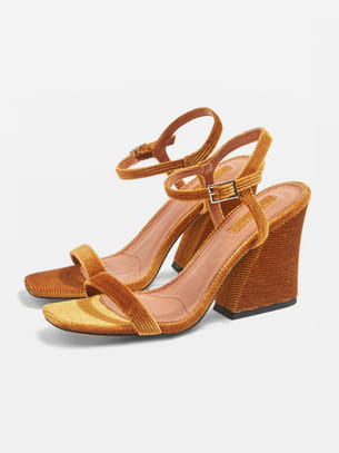 Sandales à talon large géométrique et bride cheville en velours côtelé jaune or de Topshop