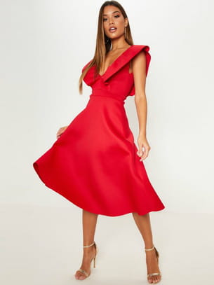 Robe rouge à volant et dos nu de PrettyLittleThing