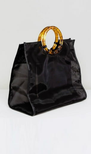 Sac noir en organza avec poignées effet écaille de tortue porté main d'Asos Design