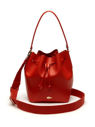 Sac seau double porté main et épaule avec anse et bandoulière en cuir piqué rouge de Lacoste