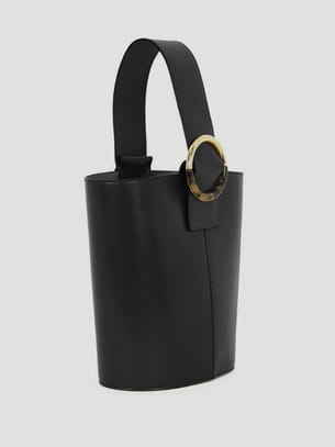 Sac en cuir de veau brossé noir porté main avec boucle façon écaille de tortue de Tara Jarmon