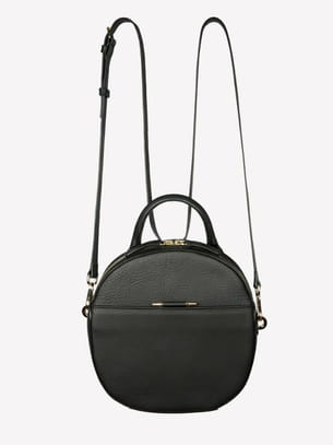 Sac à dos rond en cuir noir transformable porté main, dos ou épaule d'Ephyre