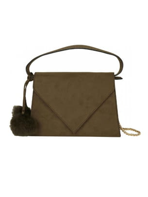 Sac rigide forme kaki agrémenté d'un pompon avec anse porté main et bandoulière en chaîne dorée porté épaule de Naf Naf