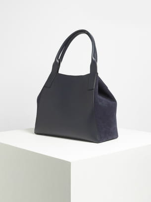 Sac rigide bimatière en cuir lisse et daim bleu marine avec anses porté main de 1.2.3