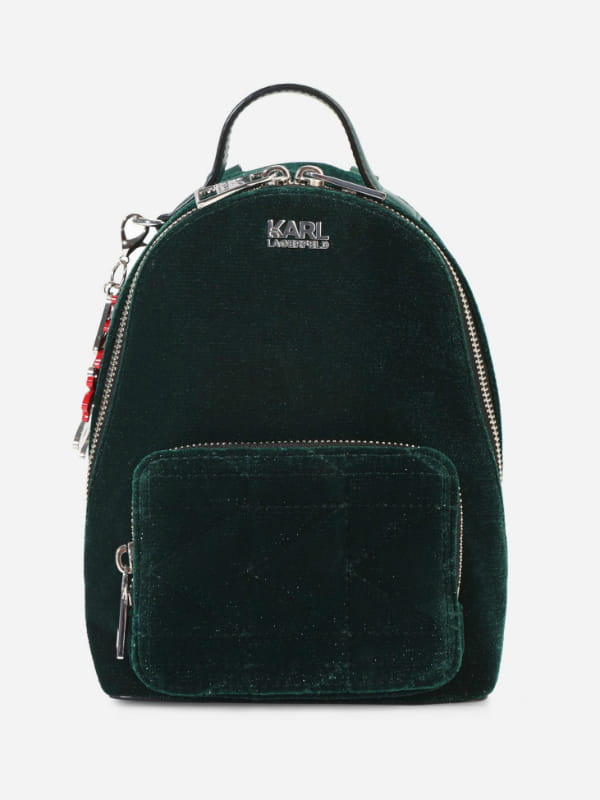 Petit sac à dos en velours vert avec anses en chaîne argentée de Kaia pour Karl Lagerfeld