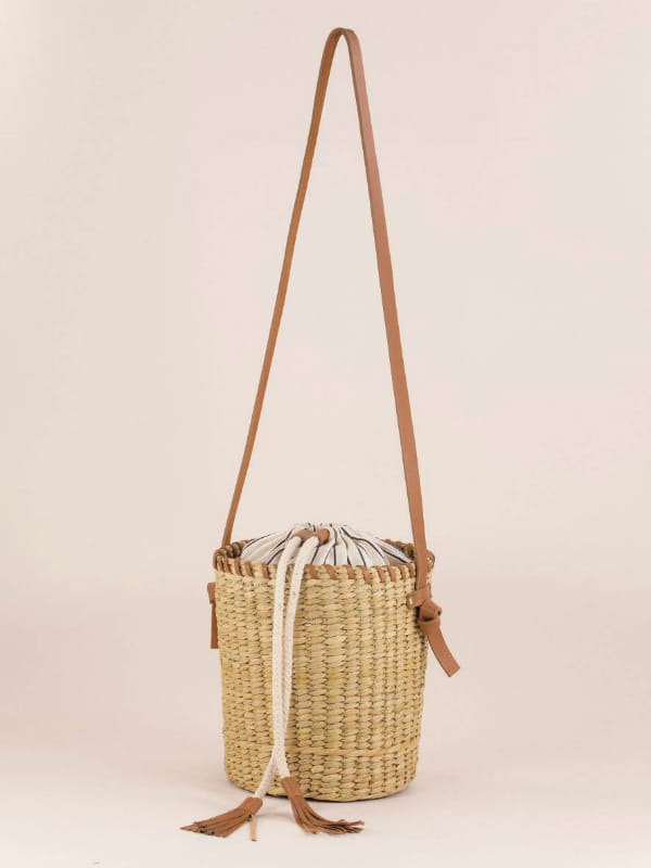 Sac seau rigide façon panier rond avec fermeture coulissante et bandoulière porté épaule de Sessùn