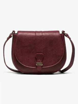 Sac rigide arrondi bordeaux à rabat avec bandoulière porté épaule de Gémo