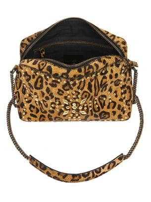 Petit sac bandoulière porté épaule en cuir de vachette effet poile à imprimé léopard et clouté de Swildens