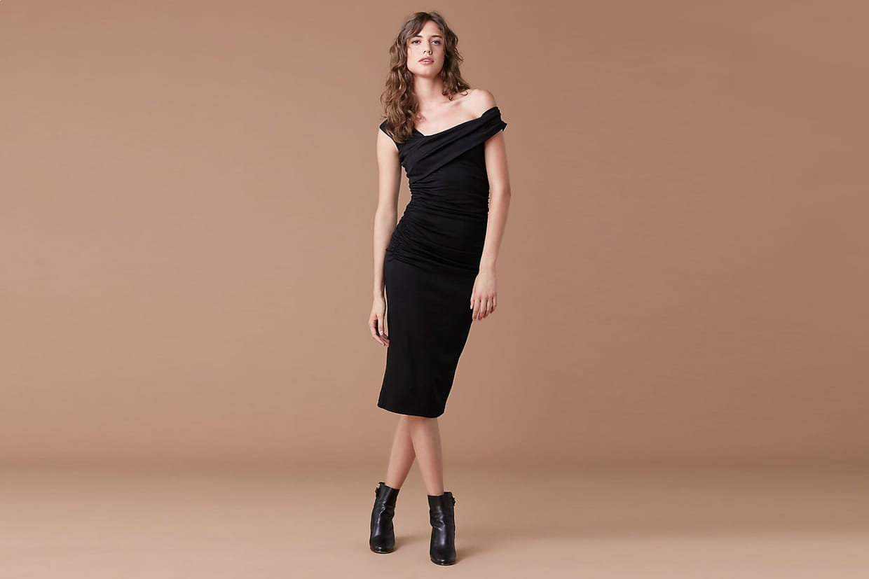 Robe noire moulante drape asymétrique noire de Diane Von Furstenberg