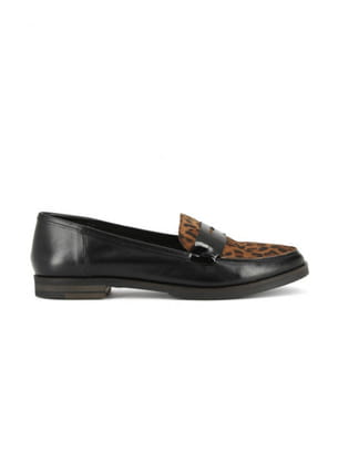 Mocassins en cuir noir avec dessus léopard de San Marina