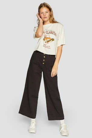 Pantalon à boutons 7/8 ème noire de Stradivarius