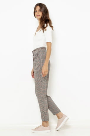 Pantalon taille haute à carreaux ceinture de Camaïeu
