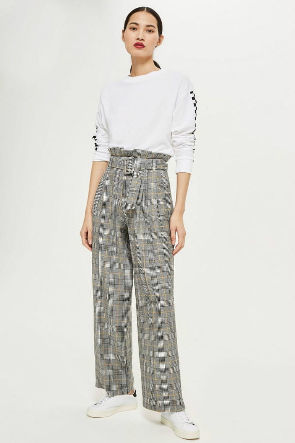 Pantalon large à carreaux gris et jaune de Topshop
