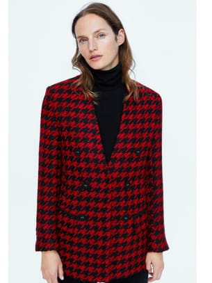 Veste droite rouge et noire à col en V avec poches à rabat sur le devant à double boutonnage croisé de Zara