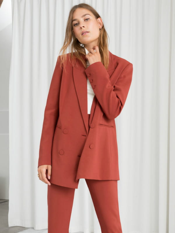 Veste oversize couleur rouille à double boutonnage croisé et poches passepoilées sur le devant d'& Other Stories