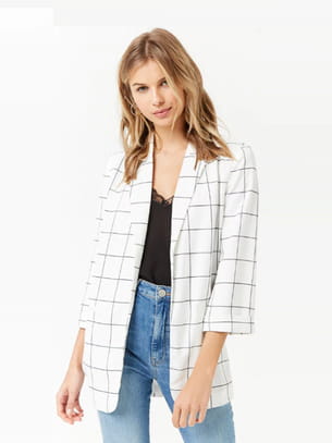 Veste oversize quadrillée blanche et noire sans fermeture à manches 3/4 et poches factices passepoilées sur les côtés de Forever 21