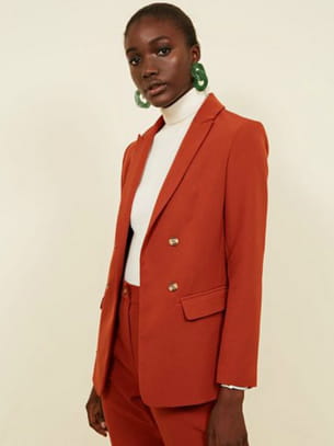 Veste droite couleur rouille à double boutonnage avec boutons façon corne et poches à rabat sur les côtés de New Look