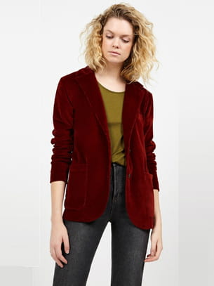 Veste droite en velours lisse bordeaux à boutonnage simple et poches plaquées sur le devant d'American Vintage