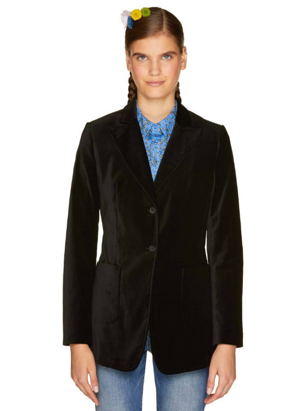 Veste noire cintrée en velours lisse à boutonnage simple et poches plaquées sur le devant de United Colors of Benetton
