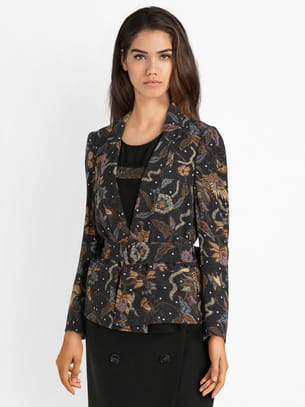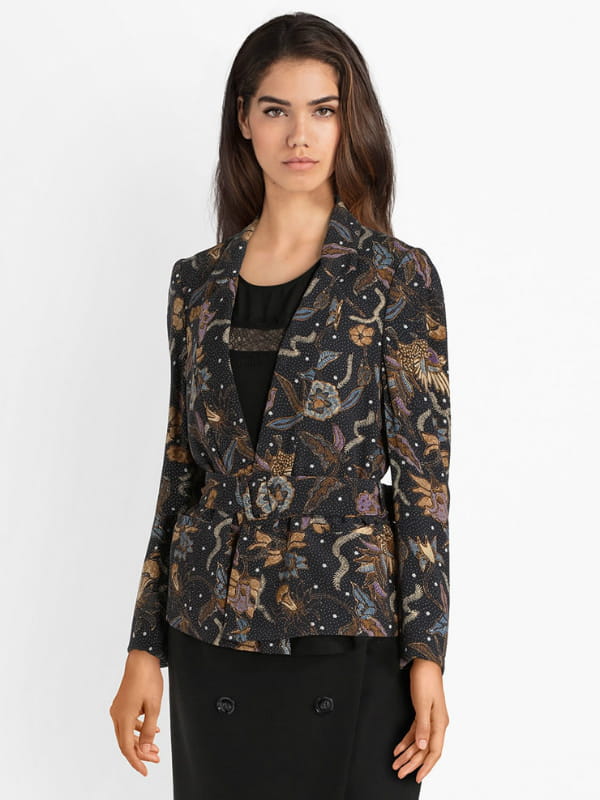 Veste noire ouverte à motif floral ceinturée avec boucle carrée de See U Soon