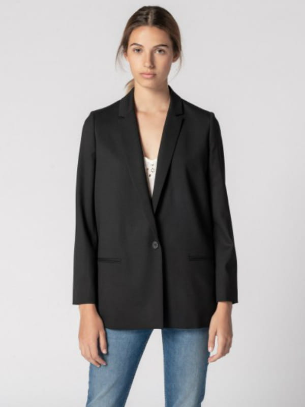 Veste oversize noire en laine mélangée à boutonnage unique et poches passepoilées sur le devant de Pablo