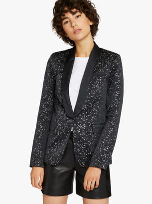 Veste façon smoking noire en tissu jacquard brillant de Karl Lagerfeld