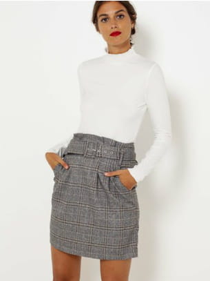 Mini-jupe grise ceinturée à carreaux prince de galles de Camaïeu