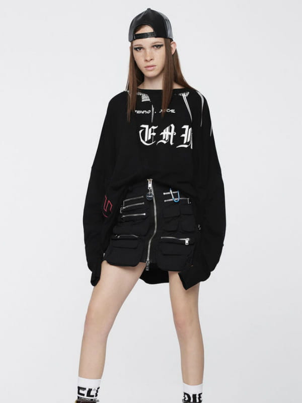 Mini-jupe noire à multiples poches avec finitions argentées et mousqueton amovible de Diesel