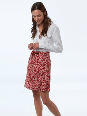 Jupe patineuse nouée à la taille et à imprimé fleuri rouge coquelicot d'Etam