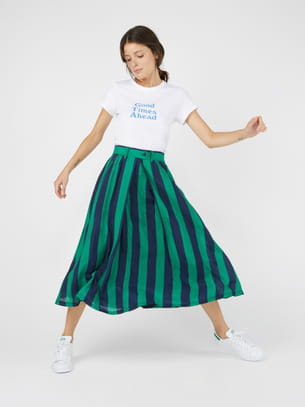 Jupe mi-longue à rayures verticales vertes et bleus des Galeries Lafayettes