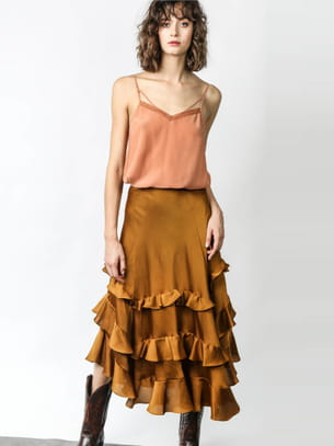 Jupe mi-longue à volants couleur mordoré de Les Petites...