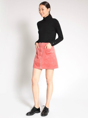 Mini-jupe forme trapèze en velours côtelé couleur gencive avec zip argenté de Pimkie