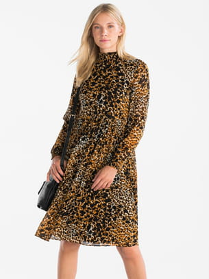 Robe midi froncée à la taille fluide et transparente smockée au cou et aux manches de C&A