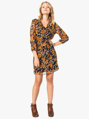Robe courte cache-cœur à imprimés à fleurs couleur jaune moutarde de Gémo