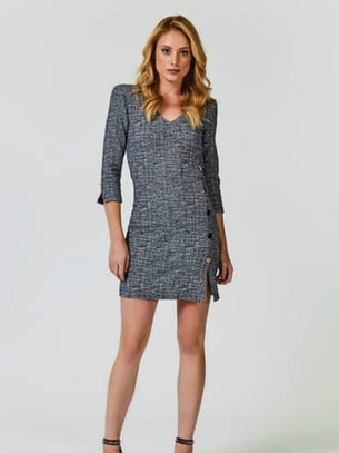 Robe courte ajustée façon tweed avec boutons dorés et manches trois-quarts de Guess