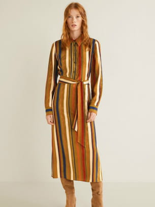 Robe-chemise mi-longue ceinturée en jacquard à rayures multicolores de Mango