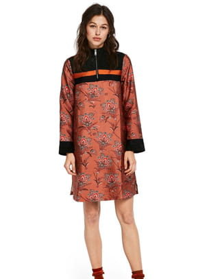 Robe courte en brocart à imprimés fleurs de lotus et empiècements noirs en maille avec zip de Scotch & Soda