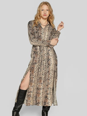 Robe-chemise mi-longue ceinturée à motif python fendue sur les côtés de Stradivarius
