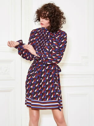 Robe courte ceinturée à imprimé graphique rouge, bleu et blanc de Suncoo