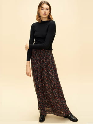 Longue robe bimatière rouge et noire à imprimé floral de Claudie Pierlot