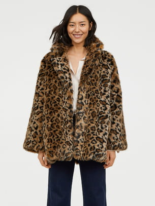 Manteau mi long à col revers en fausse fourrure imprimée léopard de H&M