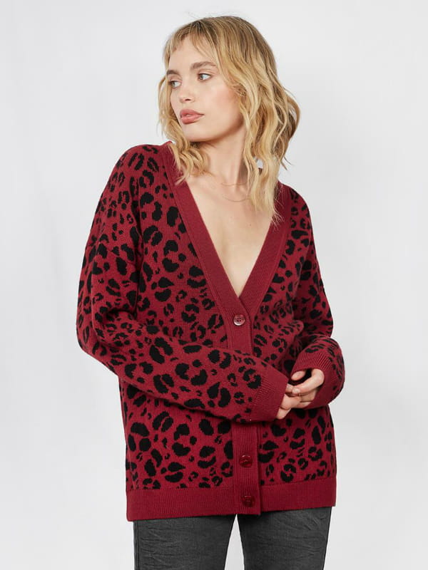 Gilet loose rouge décolleté à imprimé léopard d'Anine Bing