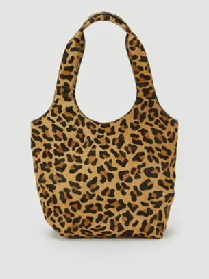 Cabas en cuir façon poulain imprimé léopard avec anses porté épaule de Monoprix