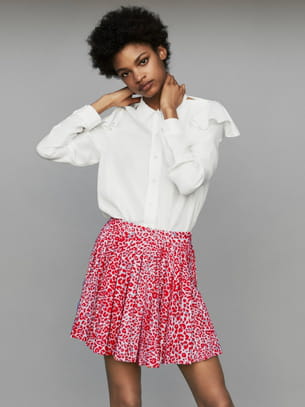 Jupe courte plissée imprimée léopard rouge et blanc de Maje