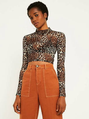 Haut court à col montant et manches longues imprimé léopard d'Urban Outfitters