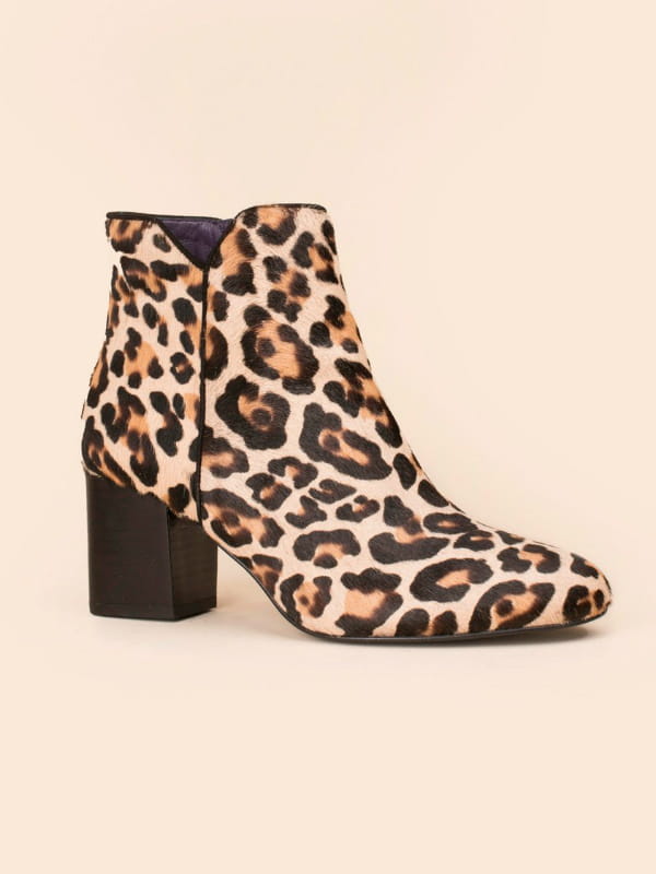 Boots à talon large en cuir façon poulain imprimé léopard d'Anaki