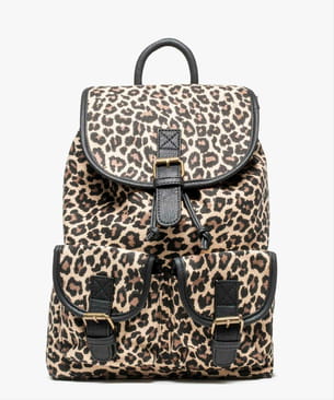 Sac à dos à trois rabats imprimé léopard et détails en similicuir noir de Gémo