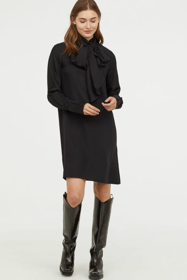 Robe noire lavallière et manches longues de H&M