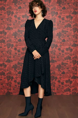 Robe noire portefeuille en jacquard de Idano