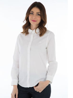 Chemise blanche cintrée en coton à ourlets arrondis et col en pointe avec fermeture boutonnée cachée d'Armor-Lux
